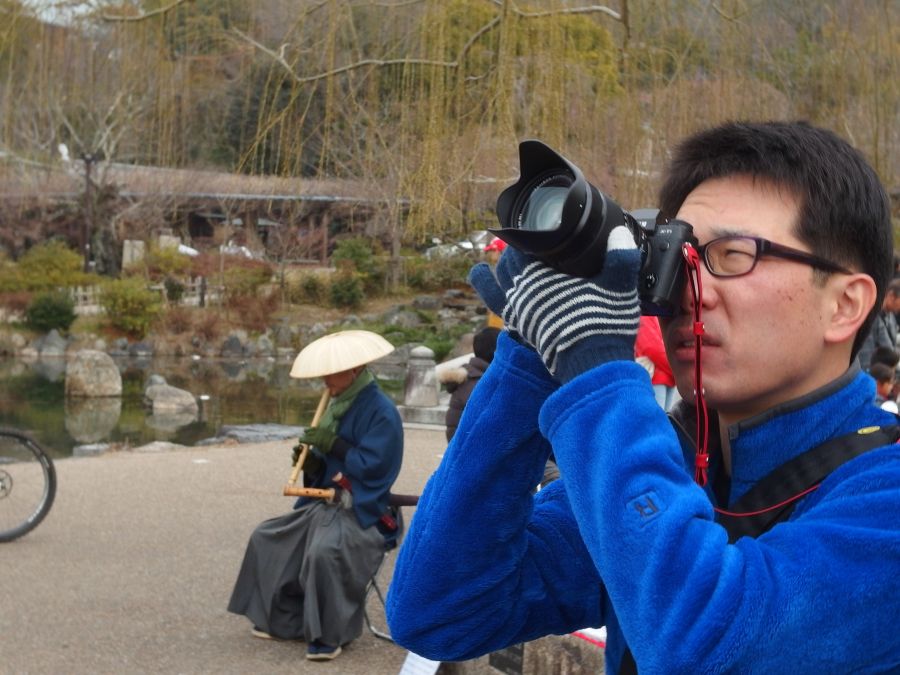 円山公園には尺八を吹いている人がいた^^ タブレットを使ったりと以外にハイテクだった。。。